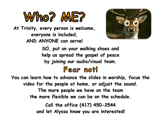 Our intent is to publish information on Trinity members who have joined since Easter 2024, and updated information on Trinity families whose contact information has changed. We will also accept updated photographs. Please submit that information to the church office (office@trinityspringfieldpcusa.org) by March 1.